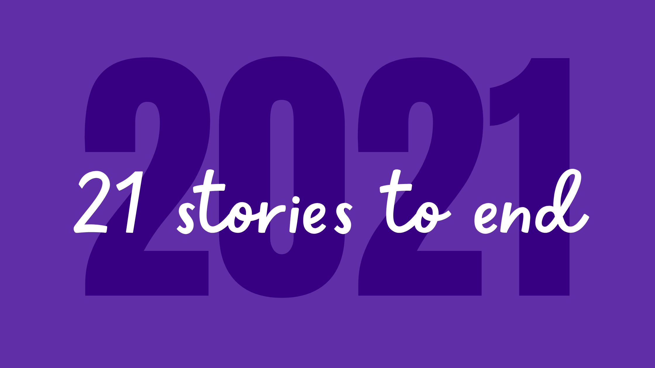 Purple background with white text reads 21 stories to end 2021.