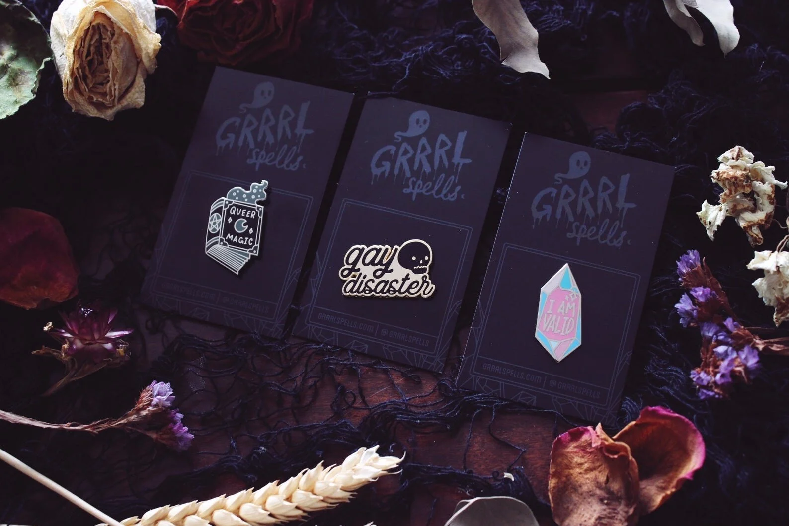 GRRRL Spells, run by En Tze, is a Toronto-based horror and occult inspired queer and feminist apparel & art brand, combining riot grrrl attitude with dark imagery and the gay agenda.